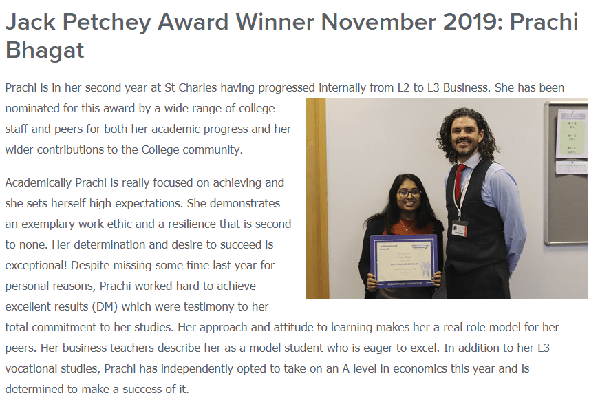 At St Charles, we are privileged to work with talented students who aspire to improve their lives through education. Their success is a result of hard work and a dedicated team of staff who are passionate about working with young people.
